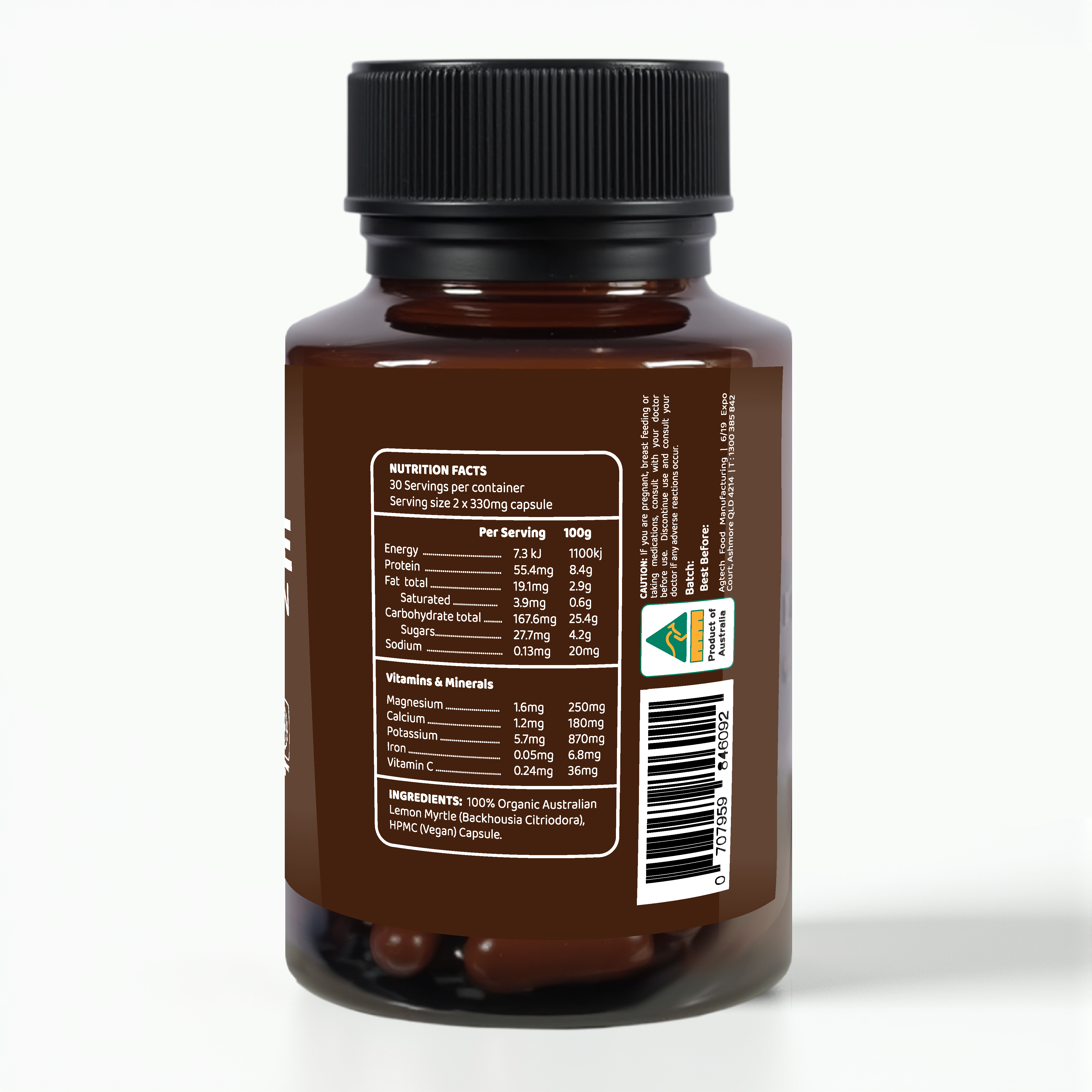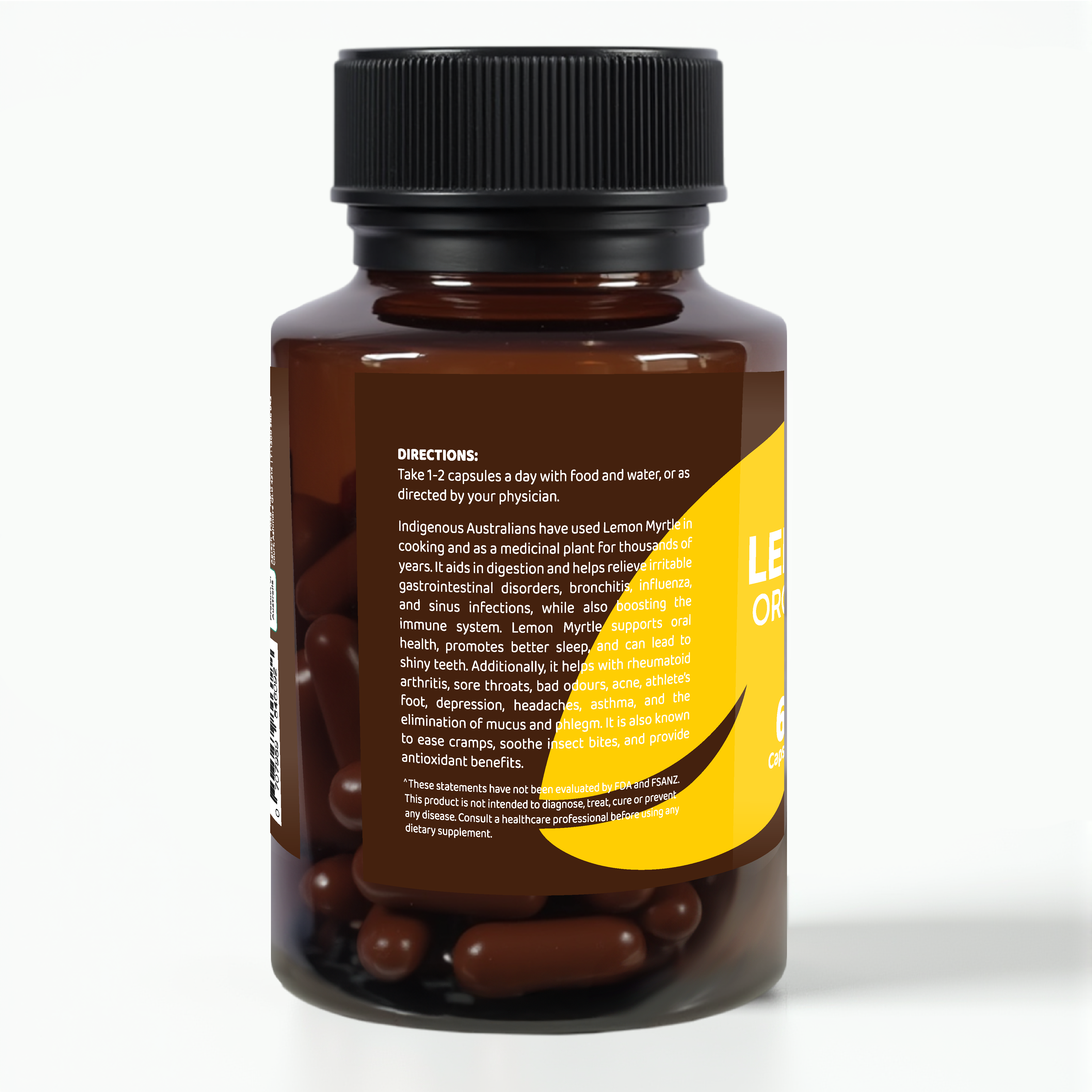 Our Lemon Myrtle is certified organic, meaning no synthetic pesticides or chemicals are used during growing or processing. It’s grown in a rich subtropical climate, hand-picked, and gently processed to preserve its natural oils, citrus scent, and active compounds. Unlike generic supermarket Lemon Myrtle powders or imported capsules, we control every step of the process – from harvest to capsule – ensuring traceability and consistency in every bottle.